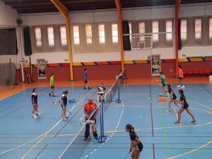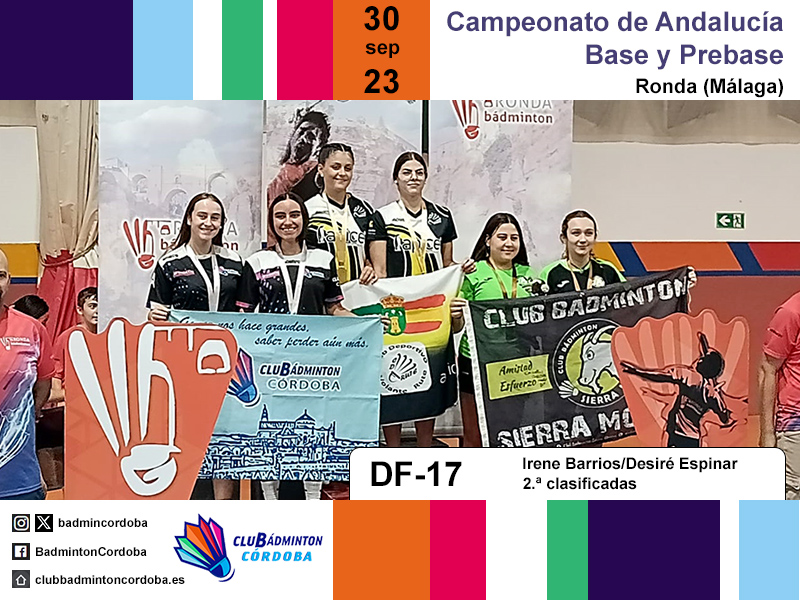 En dobles femenino, Irene Barrios y Desiré Espinar ganaron un partido, a Mónica Cortés-Ana Ortega (Sierra Morena) por 21-13 y 22-20, mientras que perdieron otro, ante Ángela Moyano-Cristina Ramírez (Volante Rute) por 21-11 y 21-13, logrando así la plata.