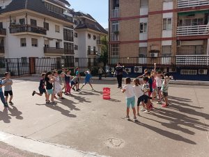 La semana pasada los técnicos del club Inmaculada Rojas y Miguel Muñoz estuvieron de promociones en el CEIP Juan Rufo. Un centro educativo que un año más nos recibe con los brazos abiertos, con la maestra Valle de Educación Física, a la cabeza. Durante dos mañanas todo el alumnado de Primaria, un total de seis clases, disfrutaron del bádminton pese al extraordinario calor de octubre. Juegos de puntería, saques cortos, recepciones, demostraciones de golpeos… fueron algunos de esos momentos. Risas, compañerismo, golpeos al aire y algunas lógicas frustraciones marcaron las jornadas.