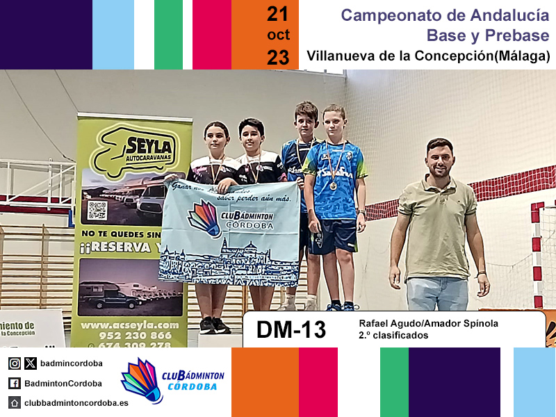 En el grupo A, Mario Spínola junto a su compañero Sergio Henríquez (Benalmádena) consiguieron ganar el primer partido ante Adrián Burgueño-Hugo Sánchez (Rute) por 21-12 y 21-10, pero no lograron pasar de grupo tras caer en tres sets ante Pablo Córdoba-Antonio Jesús Granados (Rute) por 21-16, 19-21 y 21-17. En el grupo B, Rafael Agudo y Amador Spínola ganaron sus dos partidos, frente a Isaac Reyes-Daniel Serrano (Rute) por 21-11 y 21-16, y con remontada ante Rui Montilla-Daniel García (Benalmádena) por 18-21, 21-18 y 21-18. Esto les dio el pase a la final, donde cayeron ante Pablo Córdoba-Antonio Jesús Granados (Rute) por 21-13 y 21-18, logrando la plata.