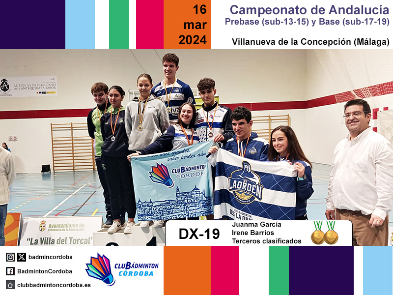 En dobles masculino sub-19, Juanma García y Carlos Javier Millán no tuvieron opciones en cuartos de final y perdieron frente a Mario López y Julio Román (CB Ronda – CB Estepona) por 21-10 y 21-8. Misma suerte corrieron Carlos Javier Millán y Desiré Espinar en dobles mixtos sub-19, donde perdieron en cuartos de final ante Jorge Carvajal y Nerea Aceituno (CB IES La Orden) por 21-4 y 21-9.