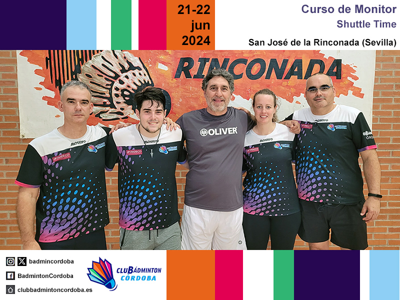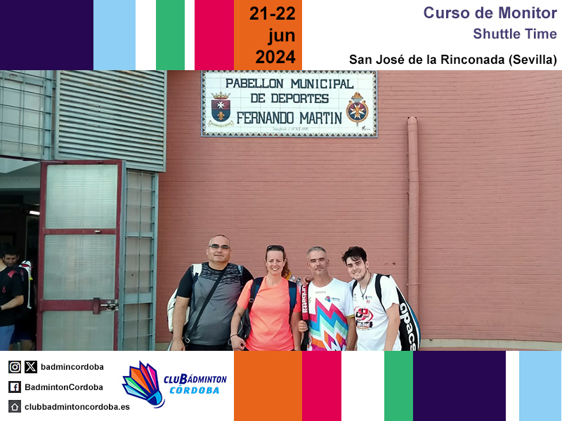 El pasado fin de semana, viernes 21 y sábado 22, se desarrolló en el pabellón Fernando Martín de San José de la Rinconada el curso de monitor Shuttle Time, convocado por la Federación Andaluza de Bádminton y homologado por la Federación Española y la Federación Mundial de Bádminton. Estuvo dirigido e impartido por Antonio Molina.