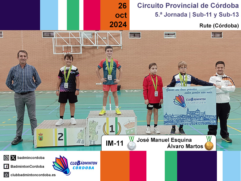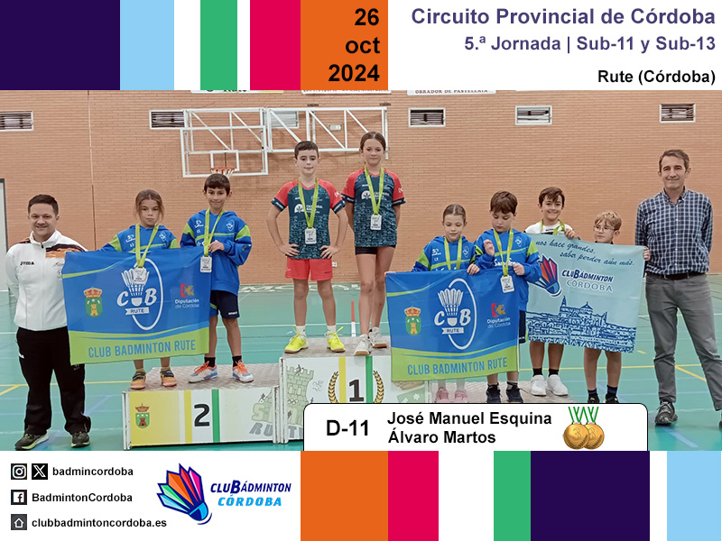 En dobles sub-11, José Manuel Esquina y Álvaro Martos llegaron hasta semifinales, logrando el bronce, después de ganar sus encuentros de fase previa de grupos, allí cayeron ante los ganadores finales, Pablo López-María Mérida (CB Baena). También participaron Iván Martín con Sergio Martos, Candela Spínola con Marta Bravo, Germán Valentín con Marcos Minguillón, y Liam García en su primera competición con solo un mes en el club, que hizo de pareja con Jorge Mérida (CB Baena).