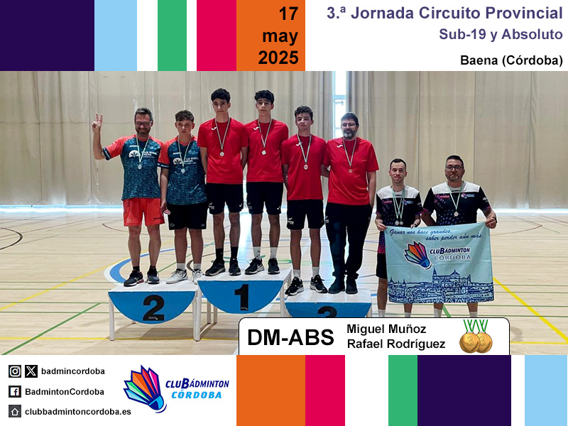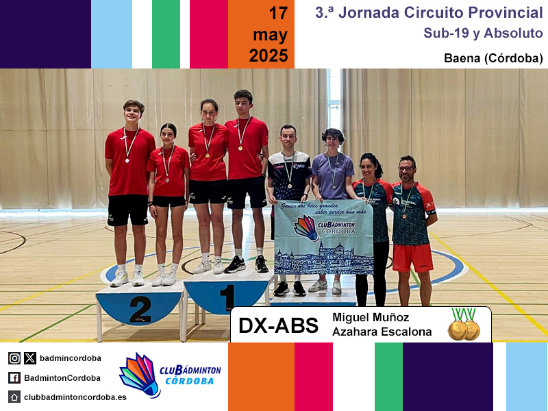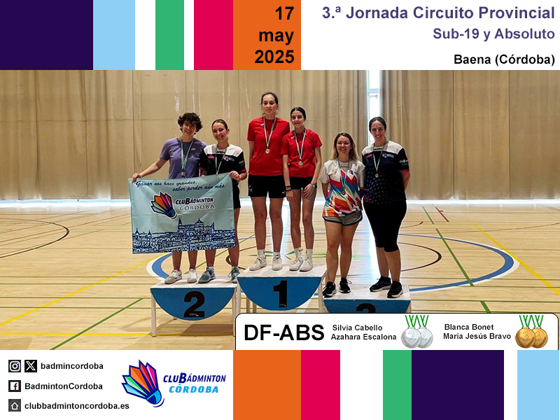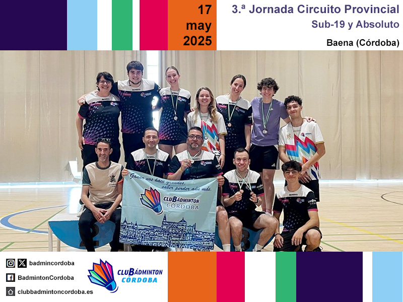 El sábado 17 de mayo se disputó en Baena la tercera jornada del Circuito Provincial de Córdoba, para las categorías sub-19 y absoluta. Hasta allí se desplazaron 12 deportistas, acompañados también de la técnico Inmaculada Rojas.