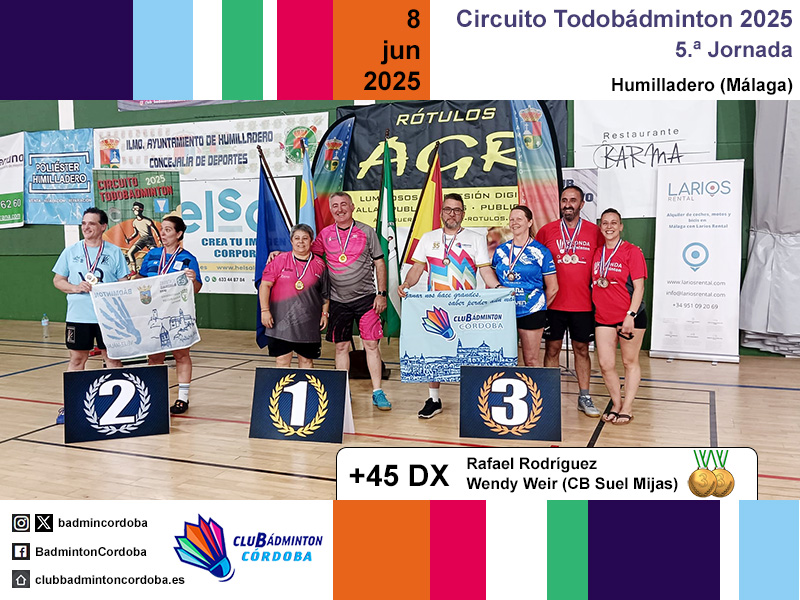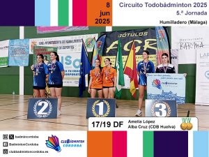El domingo 8 de junio se celebró, en Humilladero (Málaga), la quinta jornada del Circuito Todobádminton 2025. Hasta allí se desplazaron ocho deportistas y varios monitores y técnicos que comenzaron la jornada a las 9 de la mañana con sub-15, y la cerraron pasadas las 9, de la noche, con sub-17/19, absoluta y sénior.