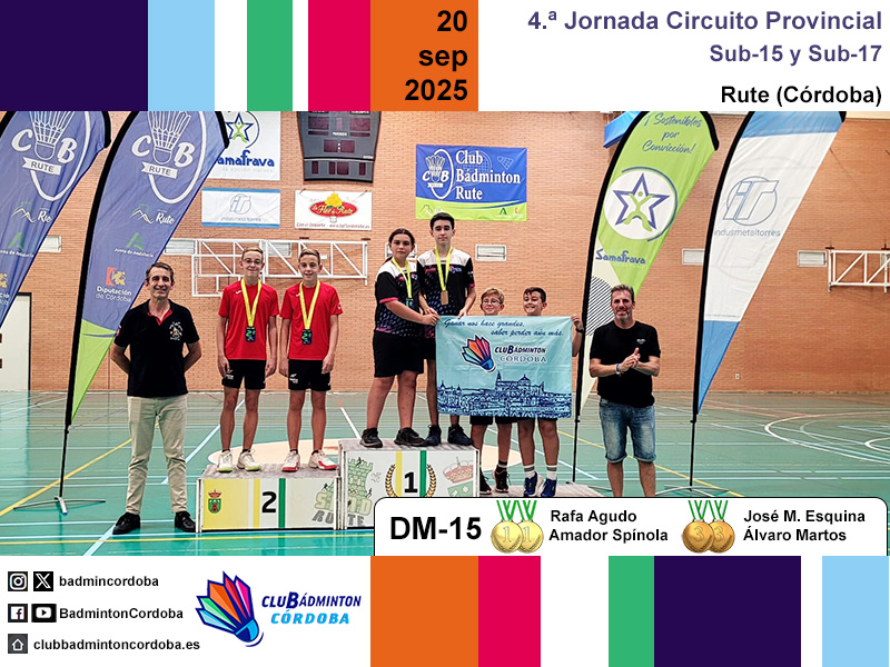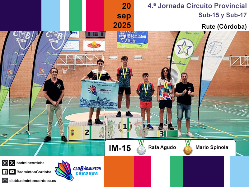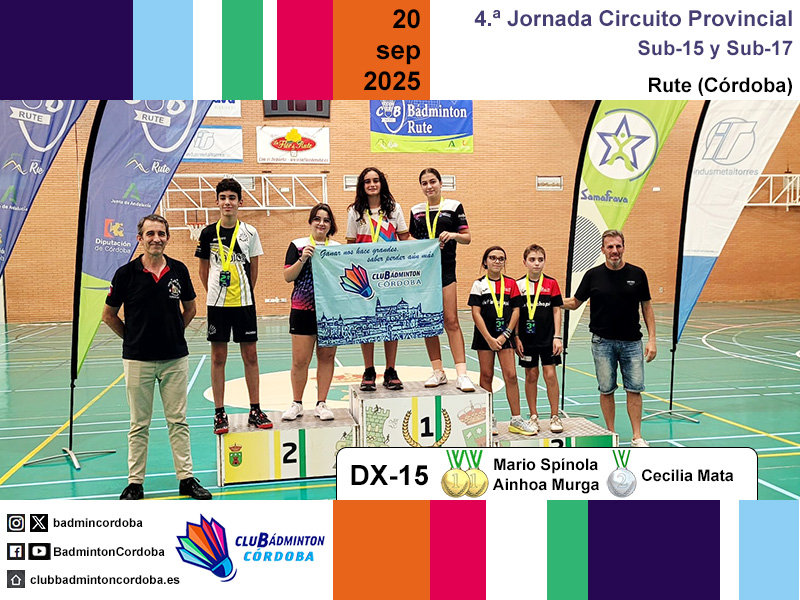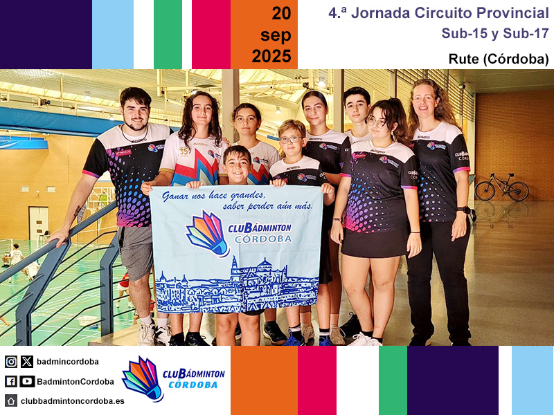 El sábado 20 de septiembre se disputó en Rute la cuarta jornada del Circuito Provincial de Bádminton. Siete jugadores del club, con el técnico Javier Romera y la monitora Pilar Serrano, viajaron hasta el pabellón Gregorio Piedra.