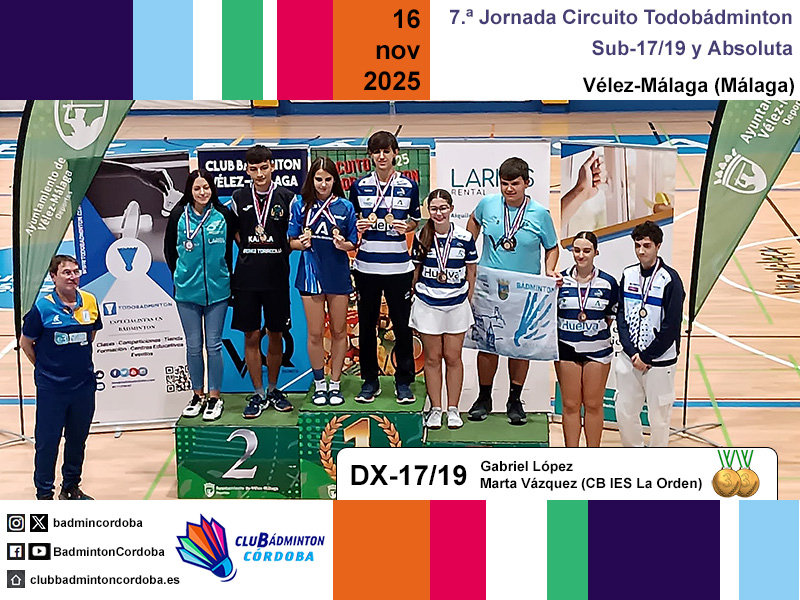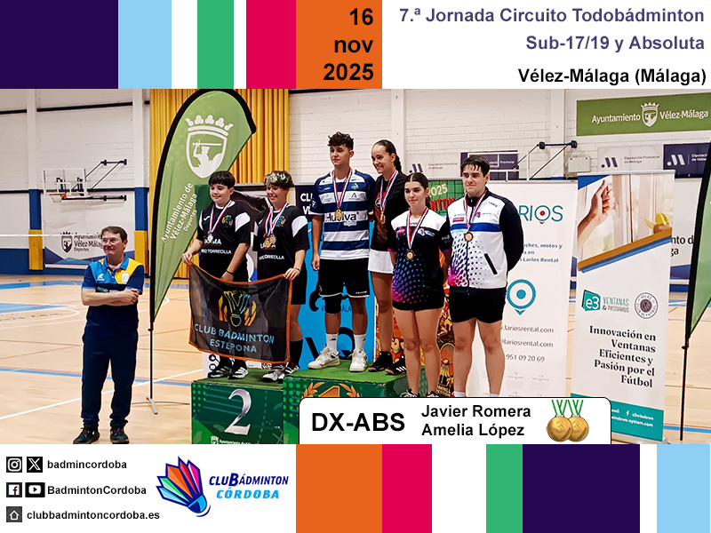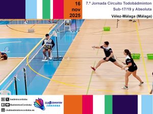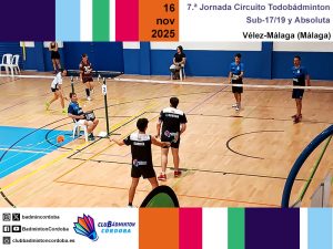 El domingo 16 de noviembre se disputó, en el pabellón Fernando Hierro de Vélez-Málaga, la séptima jornada del Circuito Todobádminton. Hasta allí se desplazaron tres jugadores del club para disputar las pruebas de las categorías sub-17/19 y absoluta.