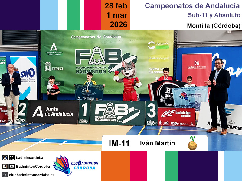 El fin de semana del 28 de febrero y 1 de marzo han tenido lugar los Campeonatos de Andalucía Sub-11 y Absoluto, en la localidad cordobesa de Montilla. Hasta allí se desplazaron cuatro jugadores en sub-11 y tres en categoría absoluta, acompañados de los técnicos Inmaculada Rojas y Miguel Muñoz, que también compitió.