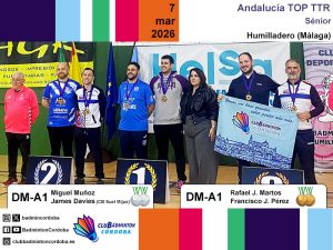 Debutaron a nivel andaluz Francisco Manuel Villar y Azahara Escalona, que en dobles mixtos A1-A2 tuvieron una larga jornada al disputar liguilla de grupo con cinco parejas. Fue un día de aprendizaje para sumar experiencia competitiva. En individual femenino A1-A2, Azahara también jugó cuatro partidos, consiguiendo una trabajada victoria en uno de ellos a tres sets donde lo mental primó sobre lo demás. En individual masculino A1, Fran tuvo enfrente a dos duros y experimentados rivales en la fase previa de grupos, mientras que Francisco Jesús Pérez, quien también debutaba a nivel andaluz, logró una victoria y tuvo una derrota en el otro grupo. En dobles masculino A1 llegaron tres medallas, de plata para Miguel Muñoz (junto a James Davies de CB Suel Mijas) y de bronce para Francisco Jesús Pérez y Rafael Jesús Martos, en un entretenido partido. En individual masculino A2, Miguel Muñoz se llevó el bronce tras caer en el primer partido con un segundo set a 27-25, y en el segundo partido a tres sets.