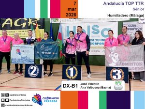 En dobles mixtos B1 con liguilla de cuatro parejas, José Valentín con Ana Valbuena (CB Baena) consiguió la plata tras ganar dos partidos y perder uno. Se quedaron fuera del podio Rafael Rodríguez e Inmaculada Rojas, que en dobles femenino B1 se llevó la plata junto a Nuria Montoya (Bad-Flay), en su regreso tras dos años sin competir. En dobles masculino B1, José Manuel Rodríguez y Rafael Rodríguez se llevaron el bronce tras ganar un partido y perder dos en liguilla de grupo.