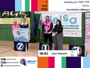 En dobles masculino, José Valentín, con Jesús Carmona (CB Puente Genil) se llevó el oro ganando sus tres encuentros sin ceder un solo set. En individual masculino, pasó como primero de grupo y en la final cayó precisamente ante su compañero de dobles, consiguiendo la plata.