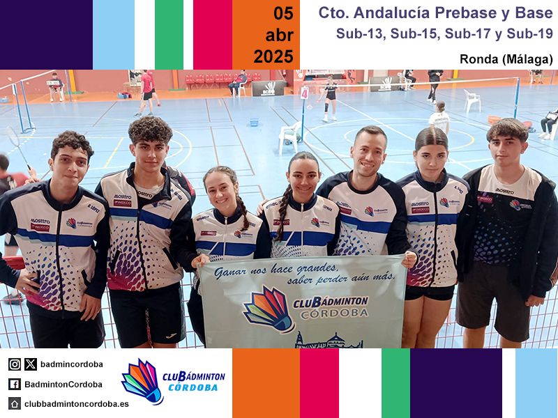 La Copa de Andalucía de bádminton llega a Córdoba capital el 2 de noviembre Presentamos el cartel oficial del Campeonato de Andalucía Prebase (sub-13 y sub-15) y Base (sub-17 y sub-19), que se disputará en La Areté (Campus universitario de Rabanales) de Córdoba capital el próximo 2 de noviembre. Inscripción hasta el viernes 18 (23:59).…